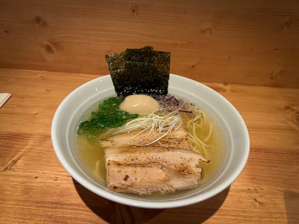 Juyi has just twelve seats at the kitchen counter, which creates an intimate and calm atmosphere. There are no reservations; you order and pay upon entering the restaurant, and the focus quickly shifts to the bowl in front of you.